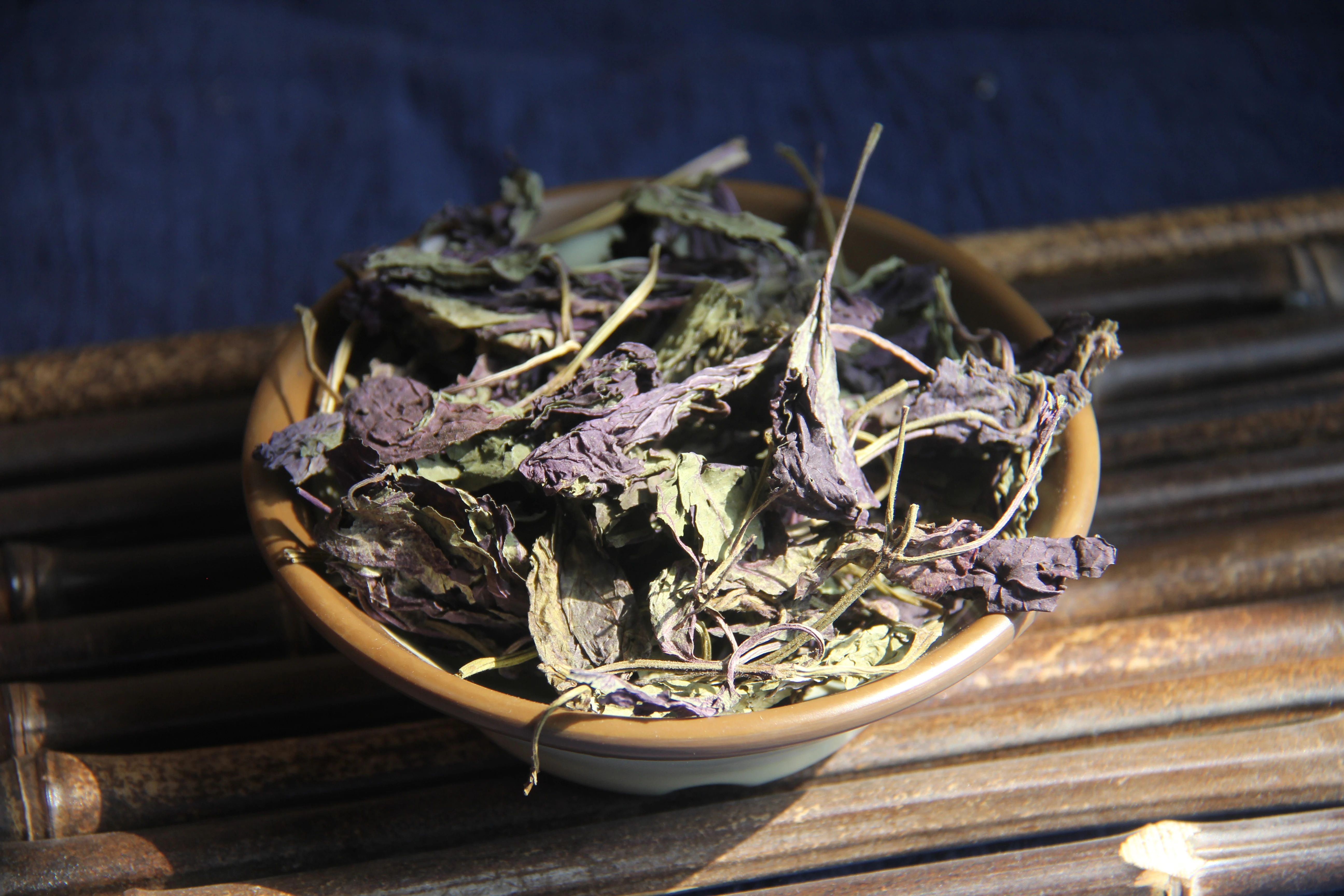 紫蘇葉是藥食兩用中藥,在夏季常在紫蘇葉(或帶嫩枝)枝葉茂盛時采收鮮用。